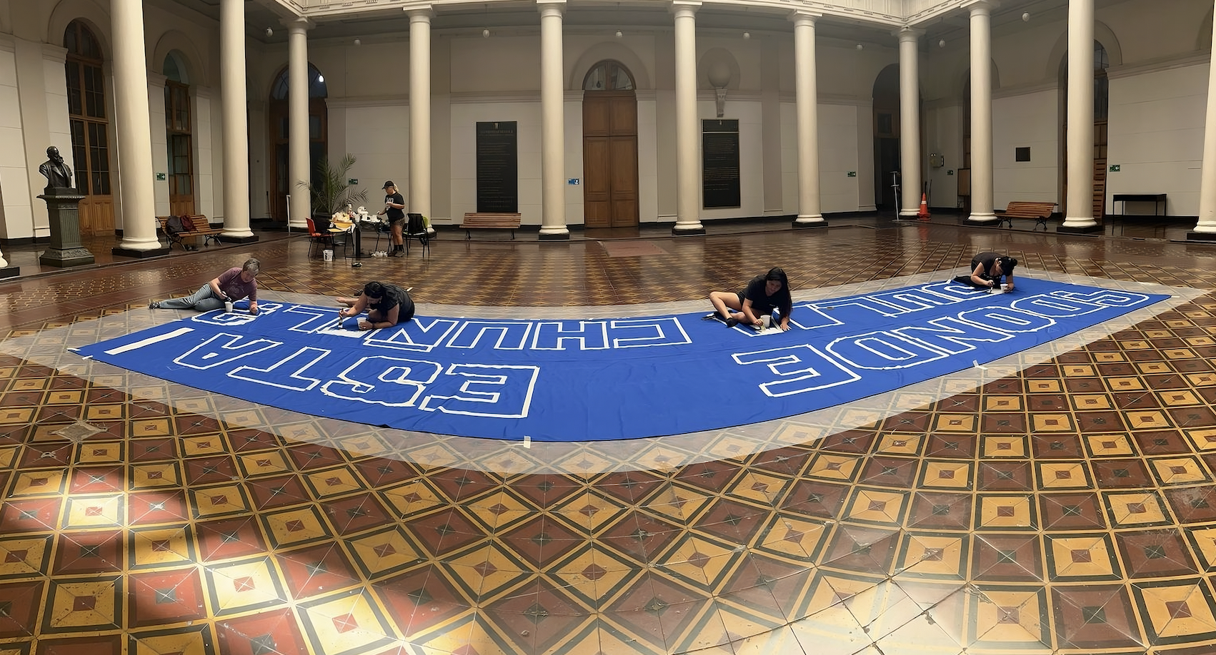 Junto a lo anterior, con la colaboración de las mujeres de La Caleta y algunas otras voluntarias, y guiadas por la muralista Wendy Chinita, colectivamente se pintó en la con el apoyo del Preuniversitario Mara Rita de la Universidad de Chile un lienzo gigante los días previos a la marcha. Este fue desplegado con el apoyo de las asistentes en plena Alameda en el frontis de La Moneda como un acto comunicacional que muestra la preocupación de impunidad e injusticia que sufren las mujeres como Julia Chuñil.