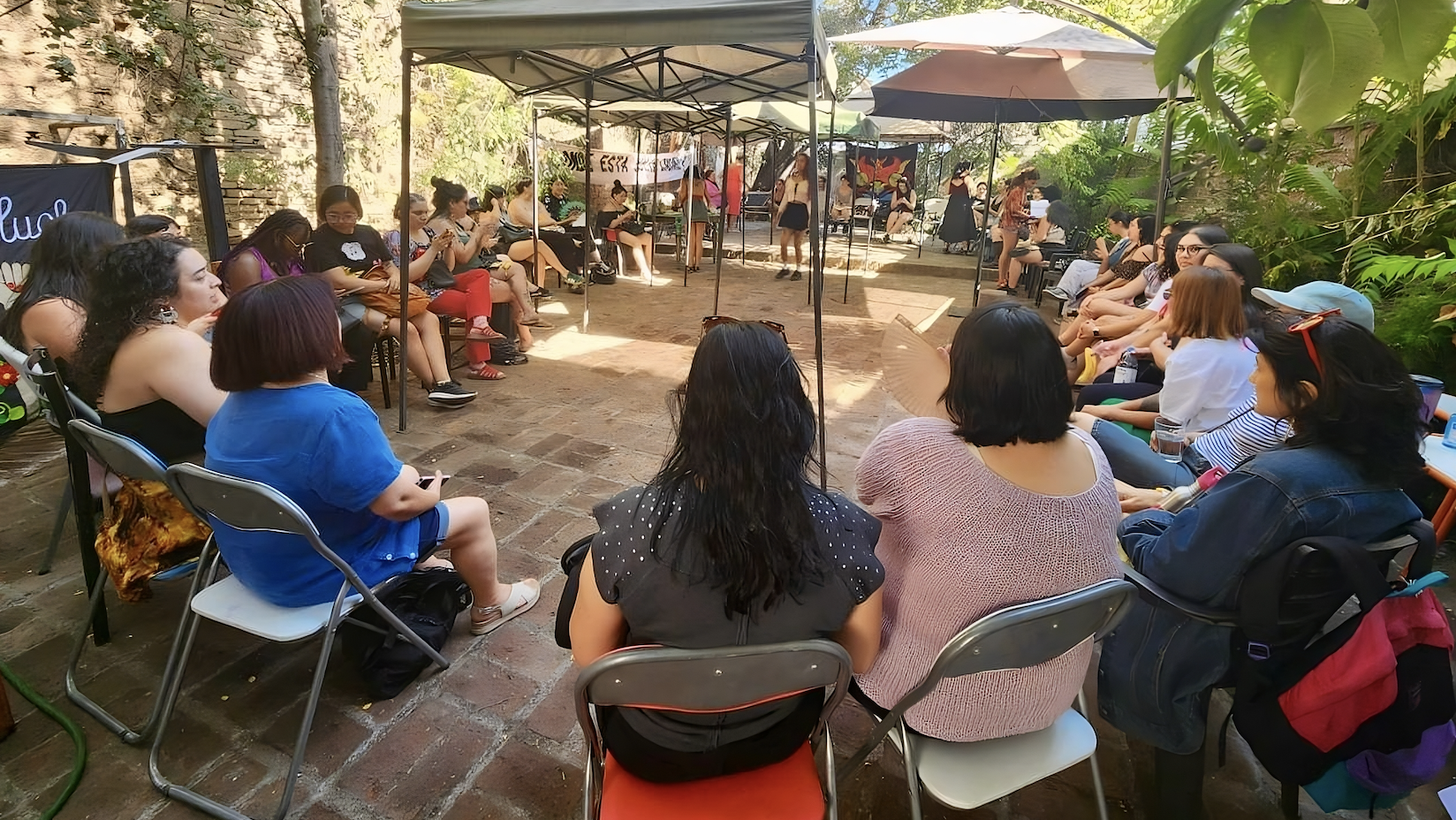 Sin olvidar que gran parte de los integrantes de nuestra organización son mujeres, desde hace algunos años alguna compañeras comenzaron a colaborar en la actividades de la Coordinadora 8M, siendo en el verano del 2023 cuando participaron en uno de los Encuentros Plurinacionales ofreciendo lo que más nos gusta hacer; trabajar con las infancias, por lo que crearon un espacio de juegos que permitió a las cuidadoras dejarlos en un lugar seguro de entretención que les permitiera participar en las actividades del encuentro.